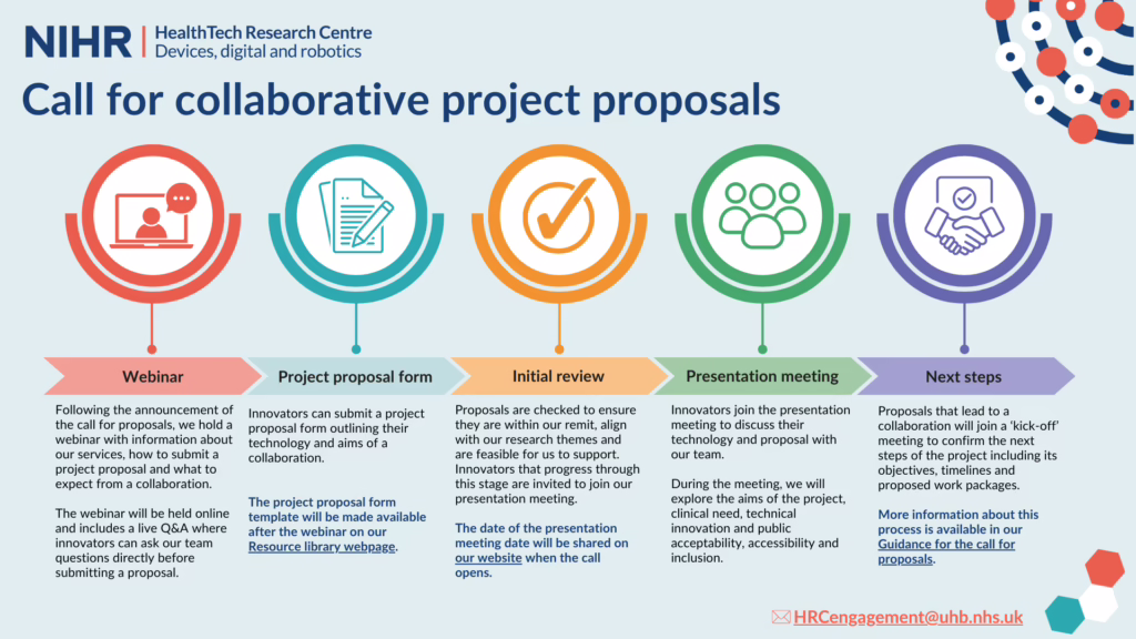 As part of the open call process, we have preliminary discussions with innovators who have submitted proposals to understand the status of their innovation and the support being sought. Please note we are unable to offer support to HealthTech that is outside of our remit.